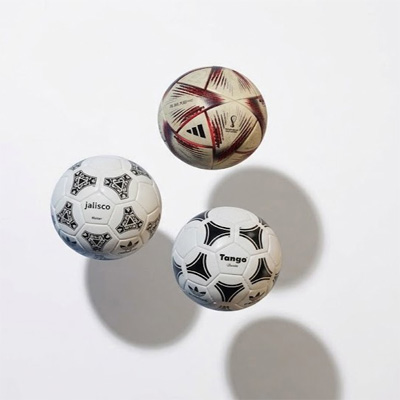 Versiones miniatura de las icónicas pelotas Tango (Argentina 1978), Jalisco (México 1986) y Al Hilm (usada en la Final de Qatar 2022).